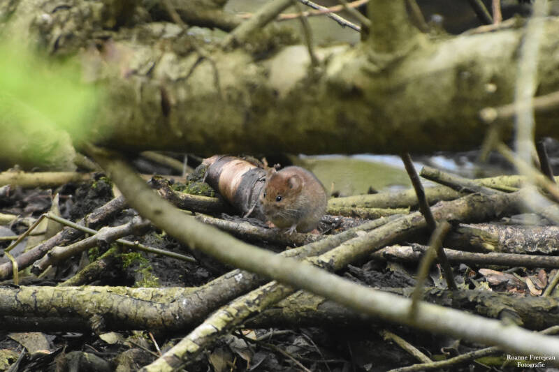 Een ander dier dat hier veel te vinden is, is de rosse woelmuis. Dit schattige diertje kan je vinden in de buurt van takkenhopen, struiken en zelfs tot op een hoogte van 5 meter in bomen! Hoor je dus iets bewegen langs het pad, dan kan het goed zijn dat er ergens in je buurt deze muis rond loopt. En waar je veel muizen hebt, daar heb je vaak uilen. Dat geldt voor dit gebied ook zo. ‘s Winters kan je groepjes ransuilen in de bomen zien zitten. Ze overwinteren namelijk met een aantal in één vaste boom. Deze boom noemen we hun roestplek. Maar denk niet dat je ze makkelijk kan vinden als ze met zo vele zijn, want dat is helaas niet zo. Ze hebben een geweldige schutkleur en zitten vaak dicht tegen de stam aan zodat ze helemaal opgaan in de boom. Toch is het zeker leuk om er eens naar te zoeken, want misschien heb je wel het geluk er een of meer te zien!