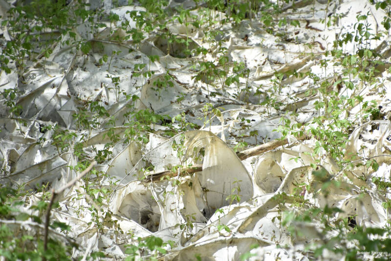 Grote stukken opgedroogd draadalg. Het zorgt voor een vreemd landschap, vind je ook niet?