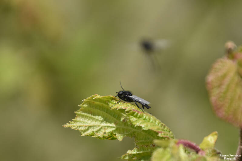 In het voorjaar heb je hier ook een aantal bloesembomen staan. Nu, begin mei dus, kan je op en rond deze bomen groepen zwarte vliegen zien rond zweven. Ze lijken misschien wat intimiderend met hun rare lange uitsteeksels die recht naar beneden hangen. Je kan die dingen makkelijk aanzien voor een lange angel, maar dat is verre van waar. Het zijn gewoon hun poten, die ze tijdens het vliegen lekker laten hangen. Deze rouwvliegen, zo heten ze, doen dan ook niemand kwaad en je hoeft al helemaal niet bang voor ze te zijn. Het zijn namelijk gewoon bestuivers, wat over het algemeen in houdt dat ze de nectar van bloemen eten. Tijdens het verzamelen hiervan blijft er stuifmeel aan hun lichaam plakken, waarmee ze dan weer andere bloemen bestuiven. Als gevolg hiervan kunnen die bloemen zaadjes aanmaken en zorgen voor een volgende generatie bloemen. Net als bijen zijn rouwvliegen dus belangrijke diertjes.
