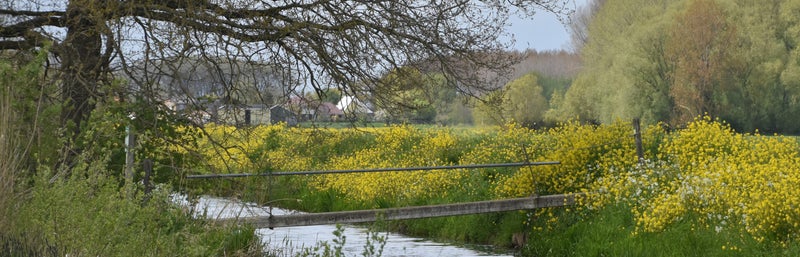 Maar nu is het natuurlijk al lang geen herfst meer en zijn er weer andere mooie dingen te zien. Zo kan je aan de rand van de sloot enorm veel raapzaad vinden. Dit is de zeer bekende bloem die in de lente complete stroken langs wegen geel kleurt. Als de schapen hier dan ook nog eens tussen lopen is het al helemaal een leuk plaatje!