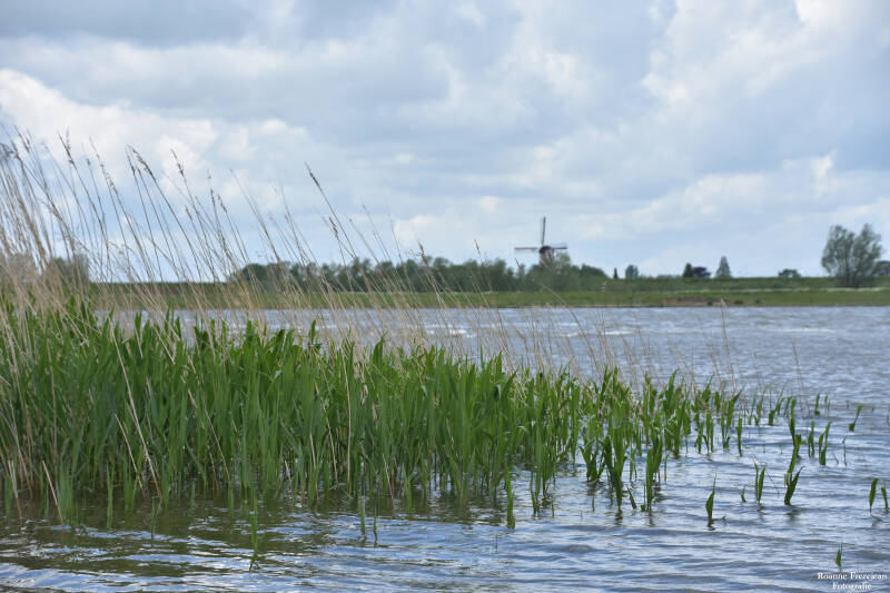 Iets wat ik nog niet veel heb gezien op de strandjes van de Waal. Riet! De eerste keer dat ik het zag stond het water nog wat lager waardoor het riet gewoon op het zand van de strandjes stond.