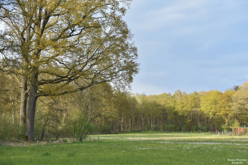 Wanneer de zomer van start gaat, worden de velden kleurrijker. Dit komt door de hogere grassen die met hun zaad hoog boven het groene gras uit reiken. En natuurlijk door bloemen zoals de boterbloem, gele lis en op sommige plekken de klaproos en korenbloem. Er is in deze tijd ook een explosie aan insecten. Er zijn vele leuke insecten, zoals de waterjuffers die vaak tussen het riet verscholen zitten, de graag in de boom zittende libellen en de hommels die je op allerlei bloemen kan vinden. Maar er zijn ook wat minder leuke, waar ik je toch even voor moet waarschuwen. Zo zijn er ontzettend veel steekmuggen, vooral in de waterrijke bosdelen. Je kan hier echt niet in de ochtend of avond met een korte broek, korte mouwen of dunne kleding gaan lopen, want je wordt volledig lek gestoken. En ja, ondertussen ben ik daar een ervaringsdeskundige in, want na twee keer 200 meter te hebben gewandeld heb ik alleen al op m’n armen zes kriebelende muggenbulten zitten. Nog een ander insect waar je beter uit de buurt kan blijven is de eikenprocessierups. Je kent hem ondertussen waarschijnlijk al, maar ik benoem het toch even. Het zijn overigens prachtige rupsen met fantastisch lange haren. Maar ja, dit mooie dier kan je beter niet van dichtbij gaan bekijken. Er is overigens in dit seizoen nog een explosie, namelijk een explosie aan planten. Deze groeien erg hard nu, waardoor je verschillende slootjes bijna niet meer ziet. Laatst liep ik in dit gebied langs zo’n overwoekerd slootje toen ik een vreemd geluid hoorde. In eerste instantie dacht ik aan een luidruchtig zwemmende rat, want die zitten hier, maar na wat zoeken kwam ik oog in oog te staan met een zeer geschrokken moedereend en jongen. Want niet alleen had ik hen niet gezien, maar zij mij ook niet. Ze schoten dan ook verontwaardigd kwakend snel door de dichte sloot naar een veiligere plek. Je kan dus soms behoorlijk schrikken van wat er in deze begroeide sloten verstopt zit.
