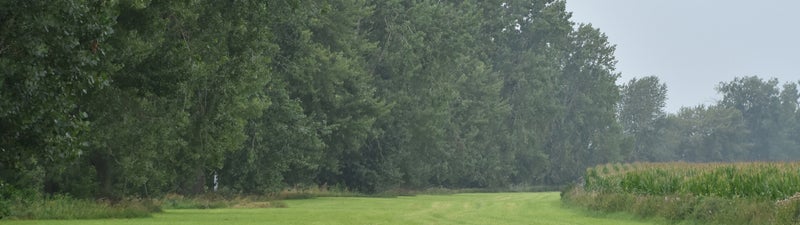 Over groen gesproken, ondanks het hoge water van een paar weken terug, groeien de meeste planten hier nog of misschien eerder weer goed. Vooral de verschillende klimplanten vallen erg op. De akkerwinde met zijn lichtroze, witte en gele kleuren komt veel voor, net als de haagwinde die wel wat wegheeft van de akkerwinde, maar minder kleurrijk is. De haagwinde heeft de neiging om de hoogte in te klimmen en is daarom regelmatig om het maïs gewikkeld te vinden. Een andere klimplant die zeker de moeite waard is om te bekijken is de heggenrank. Deze onderscheidt zich van de andere twee door zijn veel kleinere groengele bloemetjes en dunne stengels die zich spiraalvormig om takken of ander steunpunten heen wikkelen.