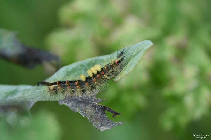 Terwijl deze juffers een schutkleur hebben, zijn andere insecten juist fel gekleurd. Een mooi voorbeeld is de wespspin die je langs de randen van het wandelpad in het hogere gras kan vinden. (Waarschijnlijk nu niet meer, aangezien ze een paar dagen terug alles hebben gemaaid.) Deze spin is opvallend gekleurd, met zijn geel met zwart gestreept achterlijf. Deze kleuren zijn juist zo fel zodat het vogels afschrikt. Zij denken namelijk een wesp te zien en wespen prikken, dus slaan ze die liever over. Terwijl de wespspin ongevaarlijk is en eigenlijk vrijwel niks tegen een hongerige vogel zou kunnen doen. Het kan trouwens zijn dat je wat schrikt als je hem ergens tegen komt, want het is een van de grootste spinnen in Europa. Het vrouwtje, die ook het kleurrijkst is, kan 1,5 cm groot worden. Maar onthoud dus dat ze ongevaarlijk zijn.