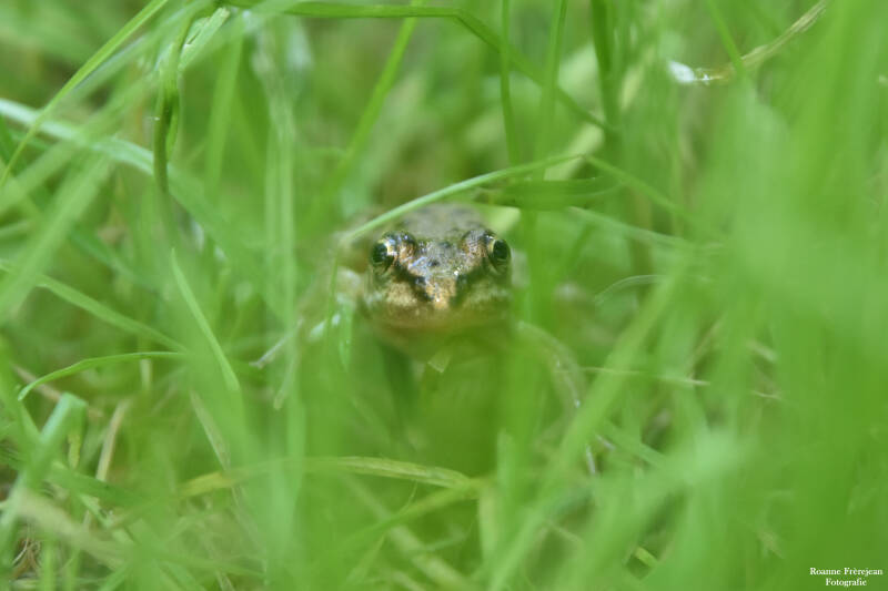 Door de verschillende poeltjes, de grote vijver, sloot en slotgracht kan je hier allerlei waterdieren vinden. Zo kan je in de buurt van de poeltjes makkelijk een paar jonge kikkertjes door het gras of over het pad zien springen. Zelfs verder van het water vandaan, kan je een groene of bruine kikker tegen komen. Deze zijn meestal al volwassen en maken aardig wat lawaai als ze door de struiken kruipen. Hoor je dus iets tussen de bladeren van bijvoorbeeld een bramenstruik, kijk dan eens goed. Je verwacht misschien een muisje, maar het kan net zo goed een grote bruine of groene kikker zijn.