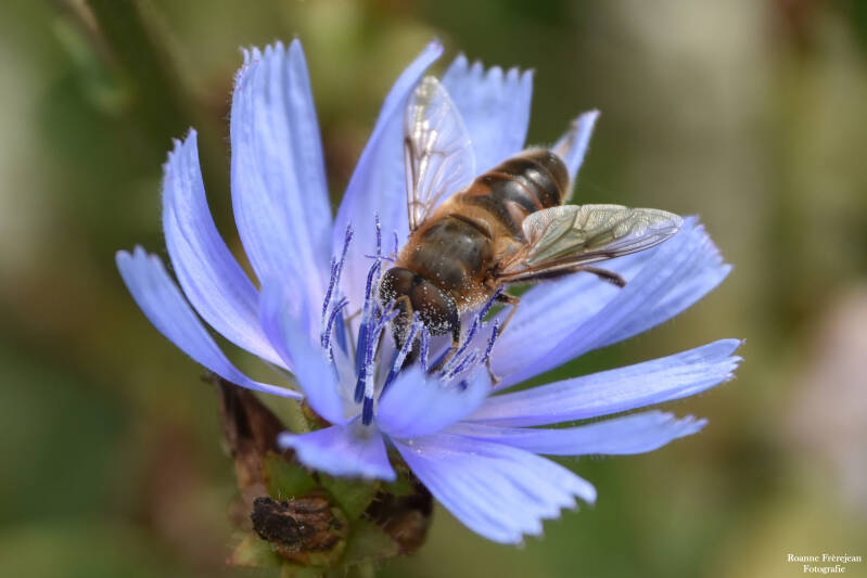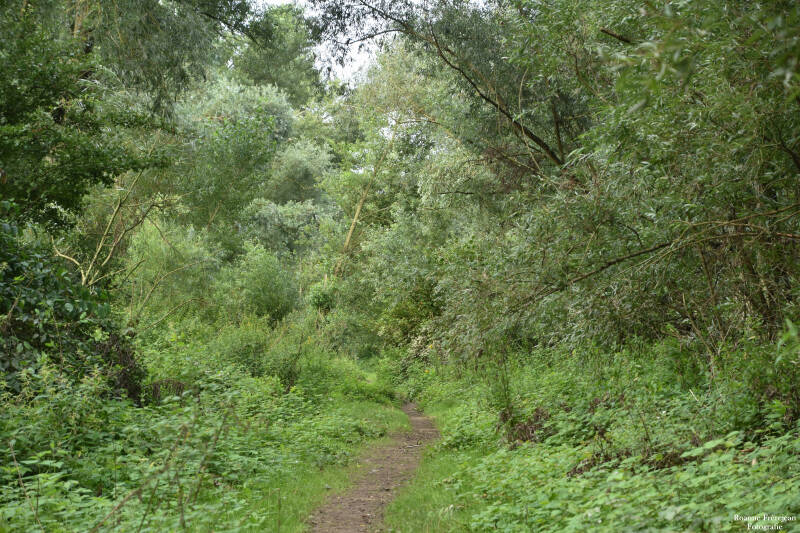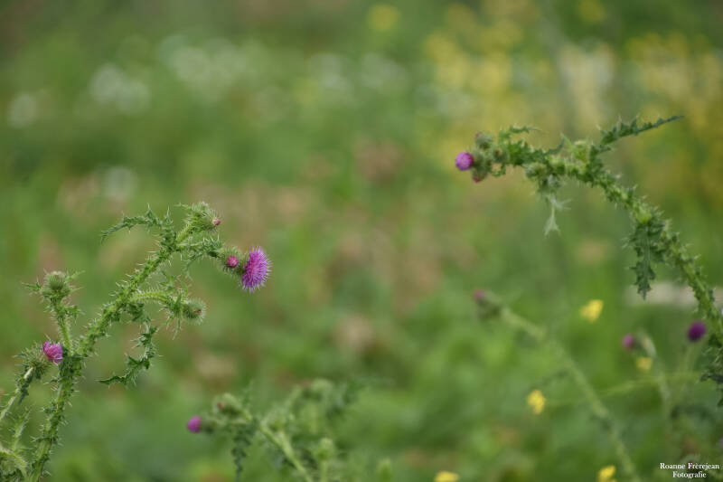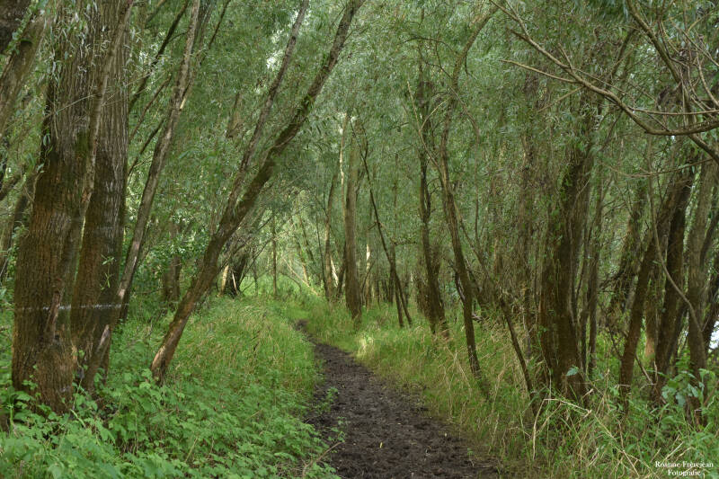 Langs de wandelpaden staat zoals je al weet veel begroeiing. Begroeiing is eigenlijk niet helemaal het juiste woord, want het zijn best mooie planten. Gewone hennepnetel bijvoorbeeld heeft kleine, roze/paarse bloemetjes met veel detail. Watermunt heeft ook kleine bloemetjes met een paarsachtige kleur, maar als je hem in z’n geheel ziet is hij toch weer compleet anders doordat alle bloemen samen een soort bol vormen. Ook echte uiterwaardplanten zoals wilde cichorei, peen en verschillende distelsoorten ontbreken niet in dit gebied.