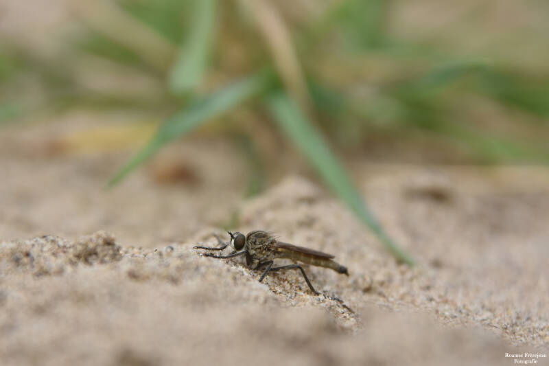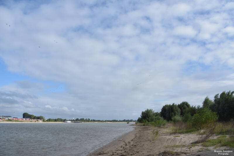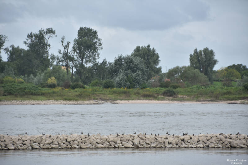 Op deze standjes kan je nog een rover vinden. De zandroofvlieg. Je kan ze regelmatig zien rond lopen over het zand, vanwaar ze turen naar lekkere insecten. Als je dan toch op de strandjes bent, kijk dan ook even naar de langsdam. Dit is de stenenrij die hier in plaats van de kribben is gemaakt. Op de langsdam kan je allerlei vogels zien zitten; Reigers, aalscholvers, kieviten en met een beetje geluk ook steltlopers zoals de wulp en tureluur. Rond deze tijd van het jaar kan je vooral de kieviten hier regelmatig met grote groepen aantreffen. Na de broedtijd in onder andere centraal Europa, vliegen ze naar Nederland om hier met z’n alle in de rui te gaan. Het veren wisselen kost veel energie, ze hebben dus veel voedsel nodig. Daarom komen ze naar onze uiterwaarden en graslanden. Er zijn namelijk ontzettend veel regenwormen en andere kleine diertjes in deze over het algemeen vochtige plekken te vinden.
