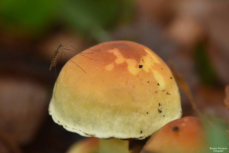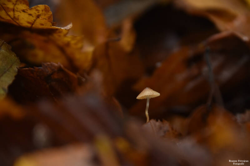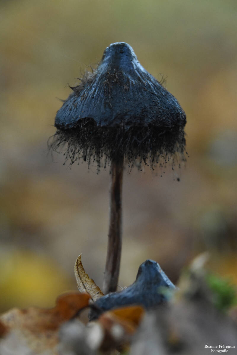 Een paddenstoel die besmet is met een mycenaparasiet. Dit kan je zien aan alle haartjes op de hoed van de paddenstoel.