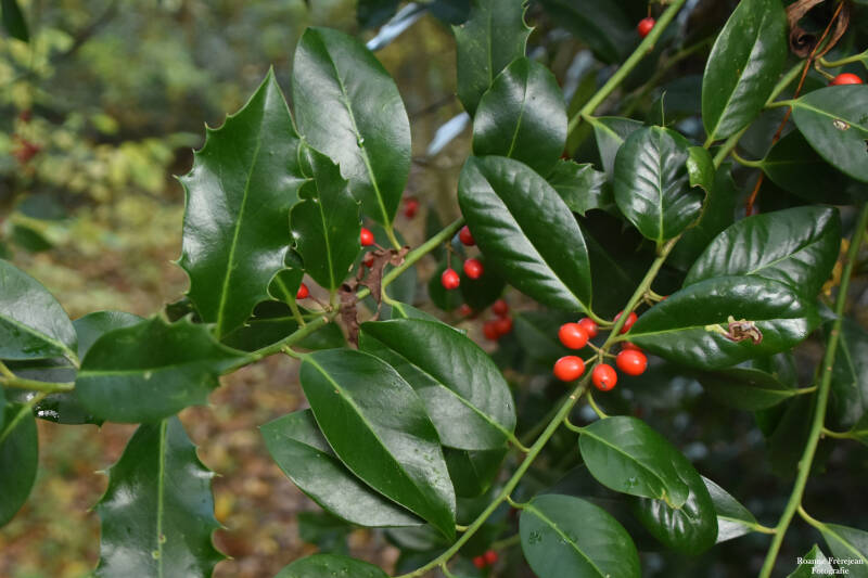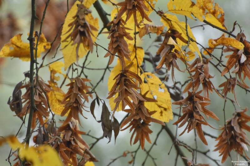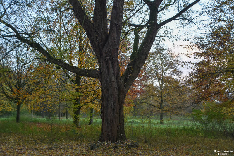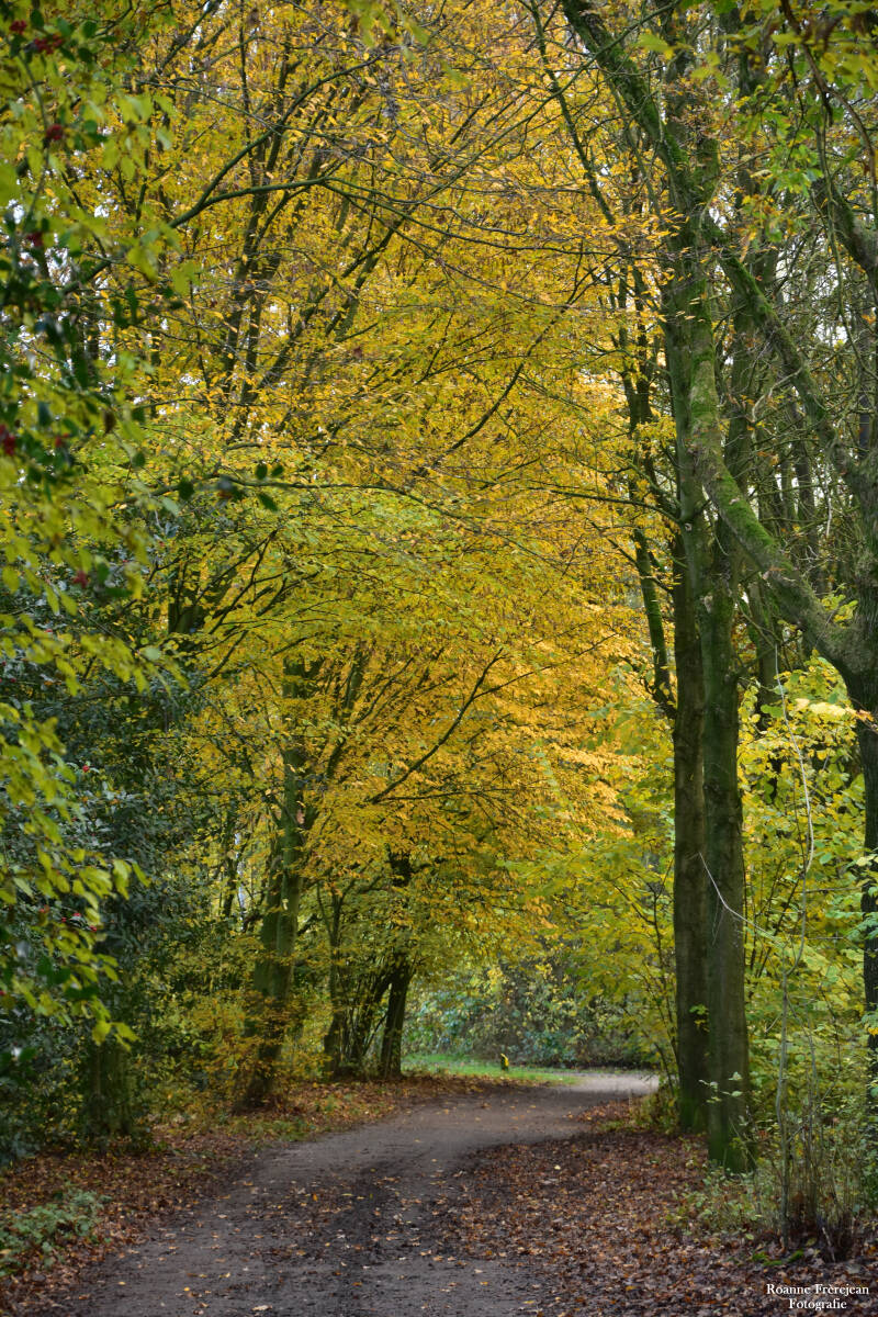 De herfst werkt ook wel heel erg mee, want er zijn ontzettend veel bomen en planten die nog mooi oranje/geel/bruin gekleurd zijn. Je kan aan de bomen wel duidelijk zien dat het een park is, want er staan vele verschillende soorten, waaronder een aantal die minder vaak voorkomen in het wild. Zo kan je hier een oude witte esdoorn tegenkomen die een prachtige, ruwe stam heeft. Of enorme ratelpopulieren met wit/grijze stammen en fel gele blaadjes. En ook de haagbeuk kan je hier veel vinden. Natuurlijk niet in de vorm van de struiken die we in onze tuin planten, maar als bomen waar nu vele zaadjes in hangen. Een compleet andere soort is de hulst. Het lijkt misschien een struik, maar officieel is het een loofboom. Je hebt er vast wel eens eentje zien staan. Grote struikachtige planten met rode bessen en donker groene, glanzende bladeren, waarvan de randen scherpe puntjes hebben. Het is de enige groenblijvende loofboom die van nature in Nederland voorkomt. Toen ik deze plant zag, was ik even verward. Hij had namelijk ook bladeren die geen kenmerkende scherpe puntjes hadden. Wat blijkt, hulst kan ook bladeren produceren die gaafrandig zijn. Dit gebeurt vooral bij de wat oudere exemplaren.