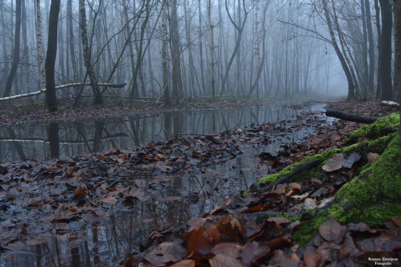 Sommige delen van het bos zijn op dit moment wat nat of modderig, zoals deze plek. Gelukkig kan je er meestal wel goed omheen lopen.