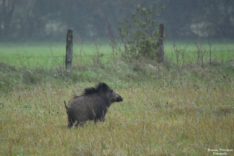 Op een regenachtige ochtend reed ik samen met mijn vriend door een heuvelachtig, bebost landschap. Opeens viel mijn mond open. Rechts van ons verscheen een groepje van 7 grote wilde zwijnen! Ze draafde stevig door en kwamen steeds dichter bij de rustige plattelandsweg waar wij overheen reden. Tot mijn grote spijt lag mijn camera achterin de auto en dus onmogelijk om te pakken. Om ze toch nog vast te kunnen leggen besloot ik maar een paar foto's met mn telefoon te maken, wat natuurlijk niks werd en voor de rest vooral te genieten. In de groep leek even twijfel te ontstaan toen onze auto en zij steeds dichter bij elkaar kwamen. Maar de leider zetten door en bijna allemaal stormde ze op zo'n 50 meter van ons vandaan de weg over. Één wild zwijn vond het kennelijk te spannend en rende terug in de richting van waar ze vandaan waren gekomen. De groep sprintte verder en verdween achter een heuveltje uit zicht. Na wat overleg besloot ik toch nog mn camera te pakken. Misschien zouden er wel meer op pad zijn of konden we ze nog terug vinden. Vlug liep ik naar de achterbak en nog voordat ik daar was verscheen opeens dat ene wild zwijn weer op het veld. Mijn hart begon steeds sneller te slaan en gehaast probeerde ik de achterbak open te krijgen. Deze wilde alleen totaal niet meewerken en bleef op slot. Ondertussen kwam het wild zwijn steeds dichterbij en bleef op een meter of 30 staan kijken naar wat ik aan het doen was. Na zeker een minuut van klungelen deed mn vriend uiteindelijk de achterbak van binnenuit open en griste ik de camera uit mn tas. Ik draaide me om en tot mijn verbazing en blijdschap stond hij nog altijd naar mij te staren. Nog net kon ik een paar foto's schieten zoals hij daar zo stond, voordat hij zich toch maar omdraaide en een andere kant op begon te rennen. Toen hij verdwenen was kon ik me alleen maar realiseren dat dit echt weer een cadeau van God was geweest. Als dat ene wild zwijn gewoon was mee gerend met de groep, als hij zich niet meer had omgekeerd maar terug was gegaan naar het bos, als hij niet minuten lang mij had aangestaard terwijl ik druk bezig was met de achterbak, als wij gewoon waren doorgereden in plaats van toch te stoppen en de camera te pakken. Bij al deze opties had ik nooit deze gave foto's van een wild zwijn kunnen maken, terwijl ik dat al een tijd lang graag wilde. Ik blijf het geweldig vinden hoe God precies weet waar ik van geniet en het me op de juiste tijd ook werkelijk geeft.