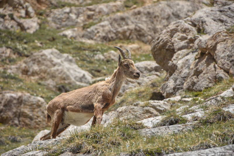 Een steenbok is een bijzonder dier wat vooral in de hogere bergen van de alpen te vinden is. En dit dier wilde ik deze vakantie maar al te graag zien. Terwijl mijn ouders en ik door de Gorges du Malpasset liepen, zocht ik de rotsen die hoog boven ons uittorenden af. Halverwege de wandeling spotte ik een paar stippen op een groen veldje schuin boven ons. Ja hoor, daar waren ze! Met mijn camera zoomde ik zo ver mogelijk in en tot mijn grote vreugde waren het niet alleen een paar vrouwtjes steenbokken, maar liepen er ook nog eens een paar kleine bokjes bij hen! Ze waren echt om weg van te smelten, terwijl ze over de stenen heen sprongen en door stukjes gras heen renden! Jammer genoeg bleven ze erg ver weg en mooie foto's zouden het dan ook niet worden. We liepen dan ook na een tijdje weer verder. Een aantal uur hebben we in de vlakte waar de Gorges in uit kwam gefotografeerd en gewandeld. Zo'n 200 marmotten verder besloten we aan de terugtocht naar de auto te beginnen. Het was nog driekwartier lopen en ik hoopte met heel mijn hart op nog een paar steenbokken. Het probleem was alleen dat het zaterdag was en ook nog eens bijna 12 uur. Het was langzaam aan drukker geworden en dus al lang niet meer het optimale moment om steenbokken te spotten. Vaak als ik in dit soort situaties zit leg ik mijn vragen aan God voor. En dit keer was het niet anders. Ga ik er nog zien? Zal ik nog mooiere foto's van ze maken? En vooral, ga ik er nog eentje van dichtbij zien? Op alle vragen kreeg ik ja in mijn gedachten. Ik was eerlijk gezegd behoorlijk verbaasd, maar al snel zag ik de groep die we op de heen weg hadden gezien iets lager op dezelfde berg staan. Opnieuw heb ik een tijdje staan genieten van deze prachtige dieren. Dit keer hadden de meeste de schaduw opgezocht, want het begon al flink warm te worden. Normaal gesproken zou ik een uurtje wachten in de hoop dat ze verder naar beneden zouden komen, maar in tegensteling tot de steenbokken stond ik in de volle zon. Waardoor het na 10 minuten al echt niet meer uit te houden was, dus vroeg ik aan God; zal ik maar weer verder gaan? Opnieuw een ja. Dus liep ik verder. De auto was niet ver meer en ik begon me af te vragen of ik het antwoord op de vraag of ik er ook een van dichtbij mocht zien, misschien niet goed verstaan had. Maar een paar stappen verder verdwenen mijn twijfels als sneeuw voor de zon. Tot mijn grote verbazing kwam er op steenworp afstand een echte steenbok achter een heuveltje vandaan gelopen! Snel maakte ik een paar foto's en volgde haar voorzichtig een stukje terwijl ze over gras en stenen klom. Ik heb me nog nooit zo verwend gevoeld als op dat moment. Hetgeen wat onmogelijk leek, gebeurde echt en op deze pagina kan je het bewijs zien!