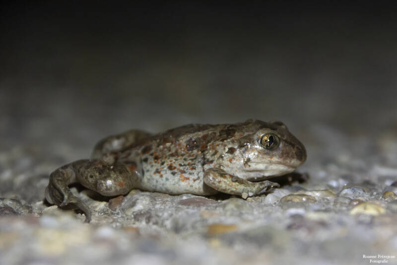 Sinds de paddentrek in maart ben ik regelmatig na zonsondergang opzoek gegaan naar trekkende padden, kikkers en salamanders. Ik wist dat er een aantal minder bekende soorten in het Land van Maas en Waal leefde, maar eerlijk gezegd verwachtte ik die niet zomaar tegen te komen. Het was dan ook een fantastische verrassing om op de eerste avond al een rugstreeppad tegen te komen! Na wat onderzoek op internet ontdekte ik dat de rugstreeppad niet de enige bijzondere pad is die hier leeft. Ook de zeer zeldzame knoflookpad heeft hier zijn thuis gevonden. Maar door zijn heimelijke leven, diep verstopt in poelen of ingegraven in zand, wordt hij niet vaak gespot. De kans dat ik hem zou vinden was dan ook erg klein, aangezien ik niet eens in de buurt van de poelen kon komen. Toch wilde ik proberen er een te vinden, want ik wist dat ze zouden gaan trekken in april. En dus besloot ik af en toe de wegen en dijk rond dit gebied in het donker af te gaan speuren. Na twee avonden niks gezien of gehoord te hebben, besloot ik het nog een laatste keer te proberen. Het was een warme avond en door de enorme hoeveelheid slakken die over de weg kropen, wist ik dat het laag bij de grond vochtig moest zijn. Een paar uur lang struinde ik met een zaklamp de dijk en andere wegen af, maar vond alleen een jonge kikker een een paar kleine watersalamanders. Pas op een paar meter van de auto vandaan, zag ik iets midden op de weg zitten. Gespannen liep ik er heen, wetend dat er net een auto in volle vaart langs was gereden. En ja hoor, het was een, gelukkig nog levende, knoflookpad! Wat een bijzonder moment was dat! Na wat foto's te hebben gemaakt, begon het op te vallen dat hij er wel wat raar bij zat. Het leek er op dat hij niet helemaal gezond meer was, dus heb ik hem voorzichtig, met handschoenen aan, in het veilige en vochtige groen langs de weg gezet. Hopelijk had hij gewoon wat last van uitdroging en redt deze knoflookpad het toch nog naar de voortplantingsplek!